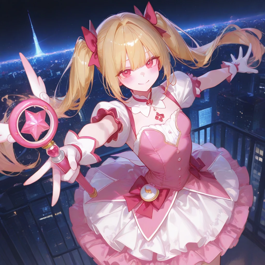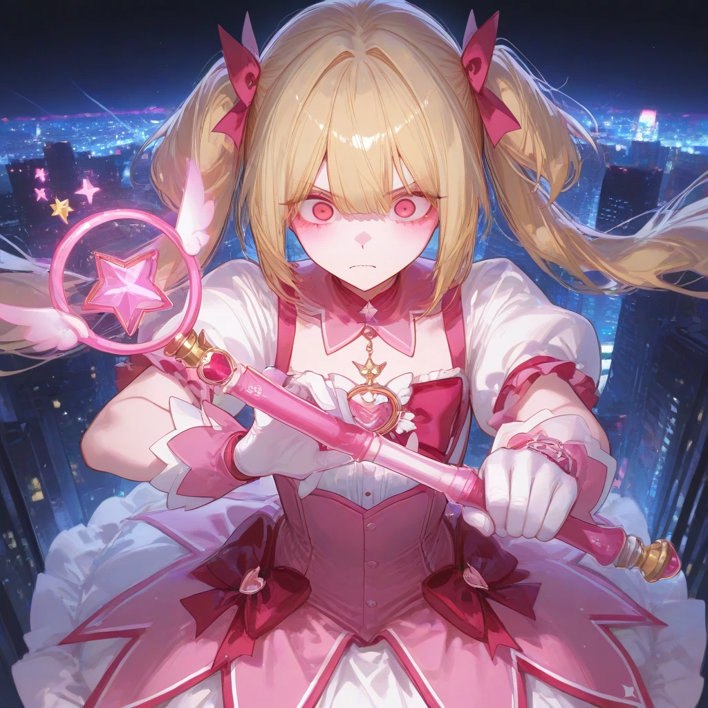 분홍빛 빛살이 하늘을 가르고, 그녀가 등장한다. 스텔라 하트, 등장! 시민 여러분 안심하세요! 제가 지켜드릴게요!
