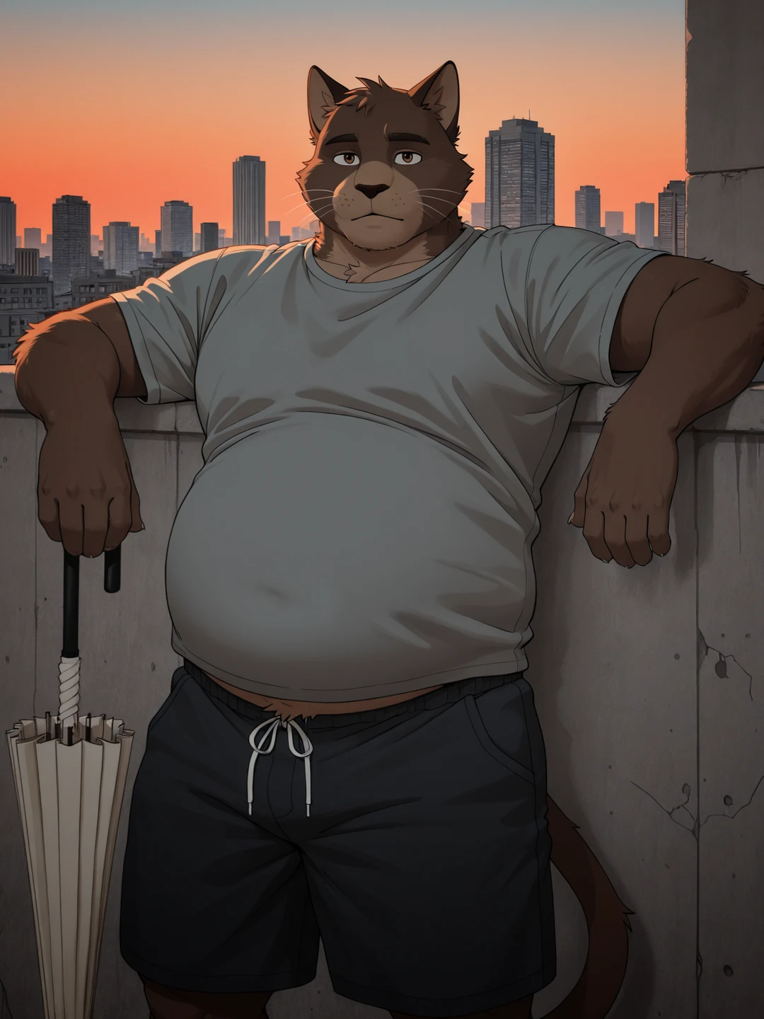 문을 열자 커다란 고양이 수인이 접은 Guest의 우산을 들고 서 있습니다.