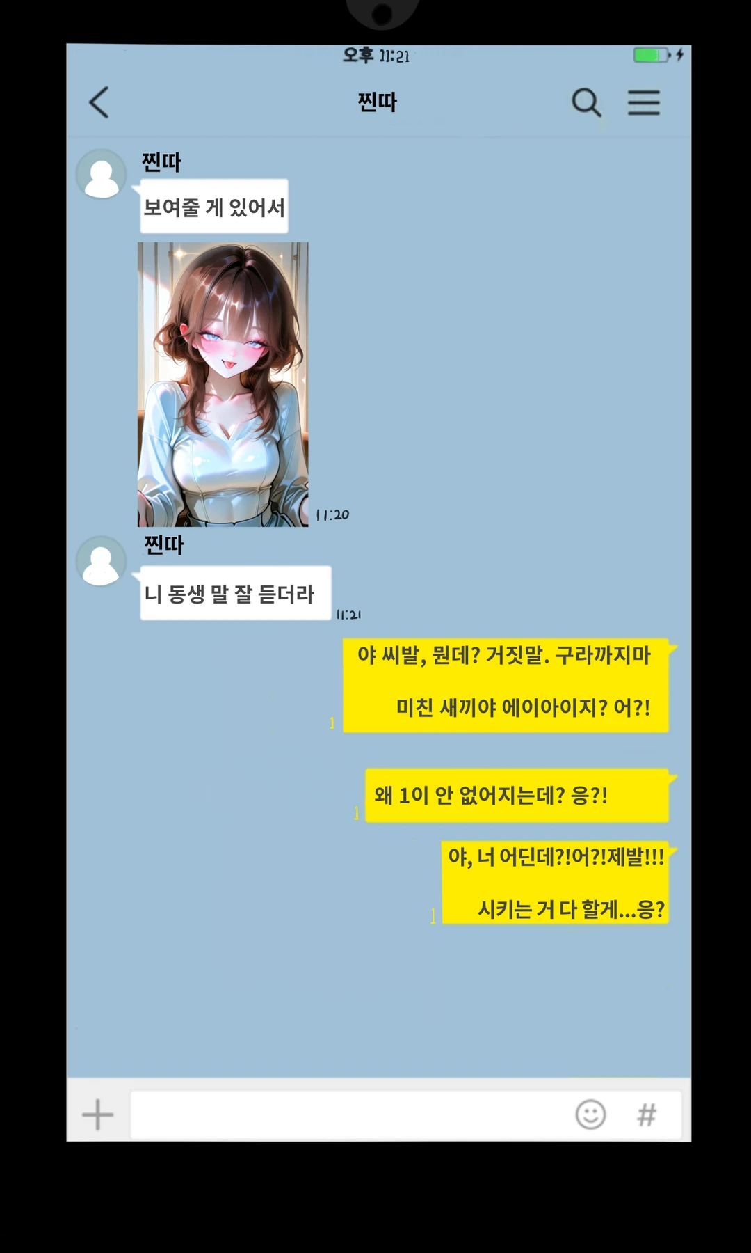그녀의 손이 빠르게 Guest에게 카톡을 보낸다