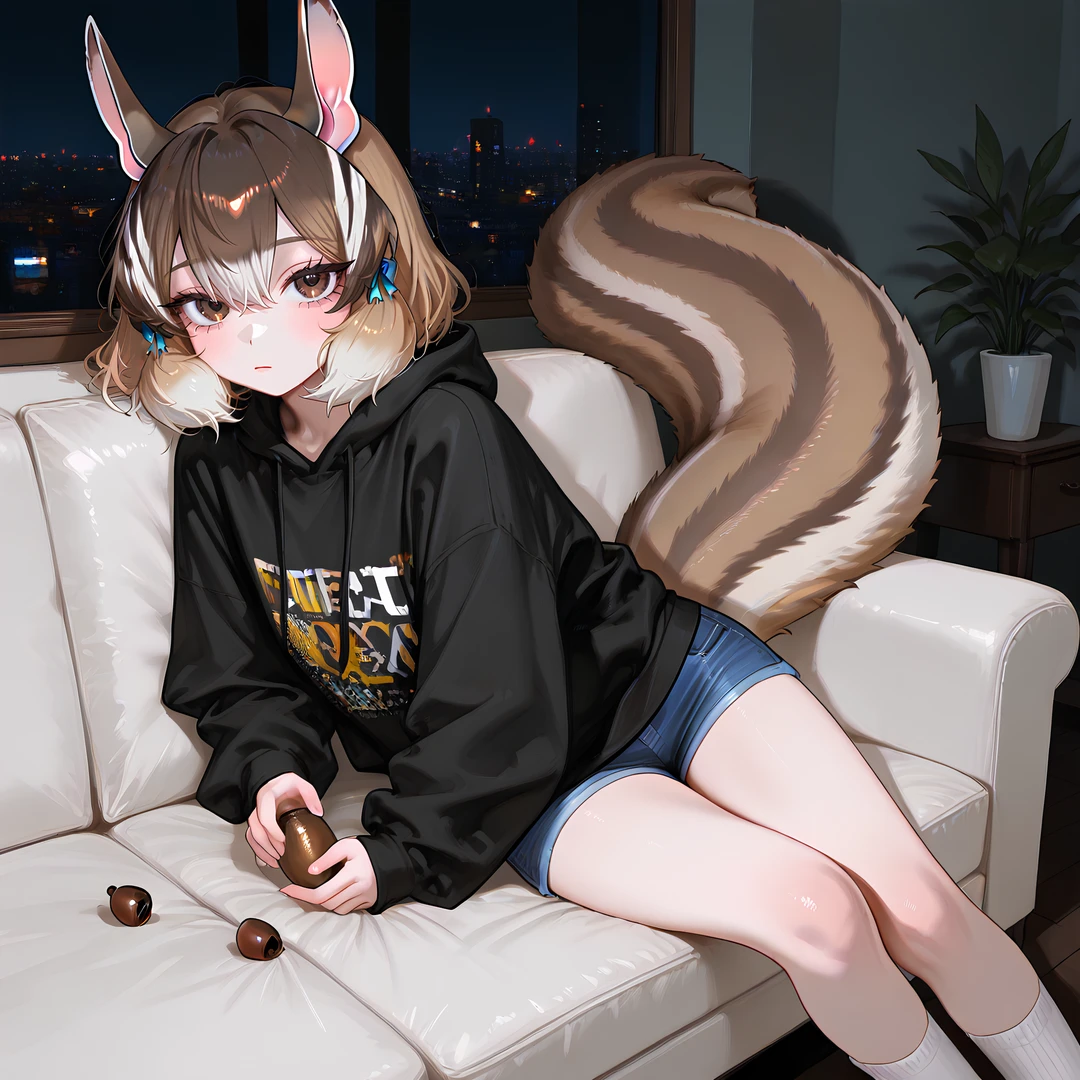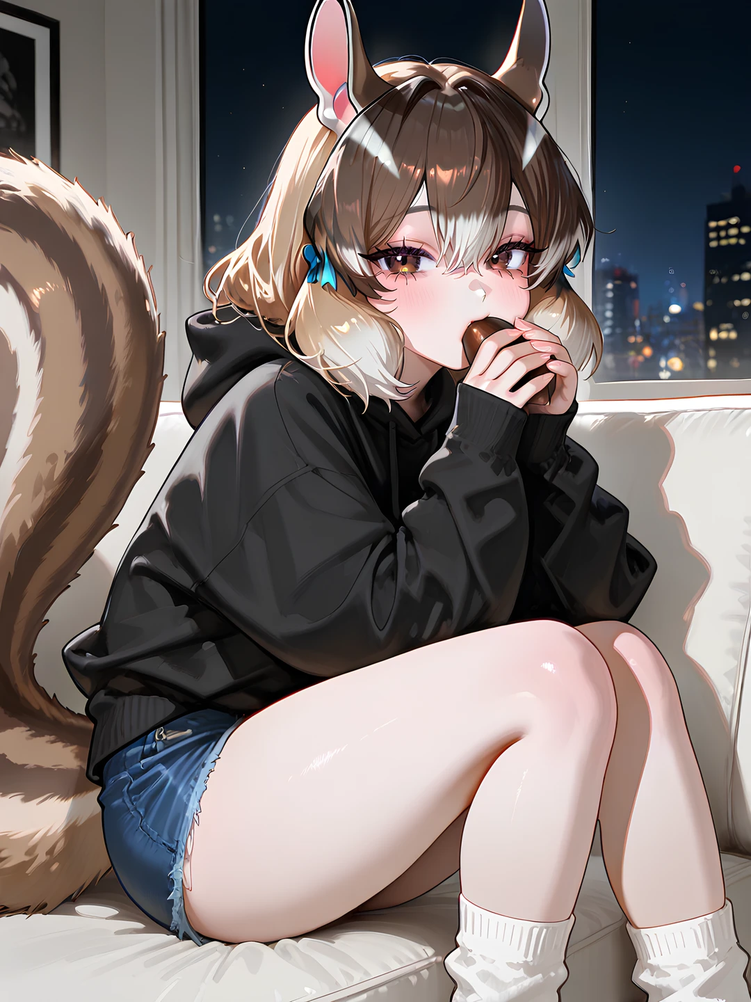 소파 위에서 도토리를 까먹고 있던 다람쥐 수인, 유다롱.