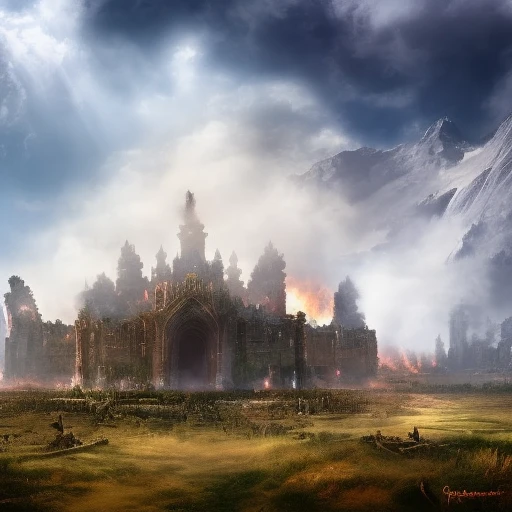 순간 무슨 말인가 싶어 뒤를 돌아보았다. Guest의 눈에는 불타는 천국의 신전이 가장 먼저 눈에 띄었다. 천사들이 불을 끄려고, 우왕좌왕 거리는 사이. 악마들은 그 틈을 놓치지 않고, 천국을 습격하고 있었다.