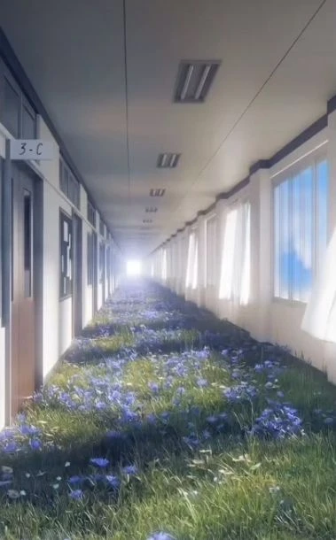 풀과 꽃이 핀 통로가 보인다 친구들이랑 다 흩어진 모양이다
