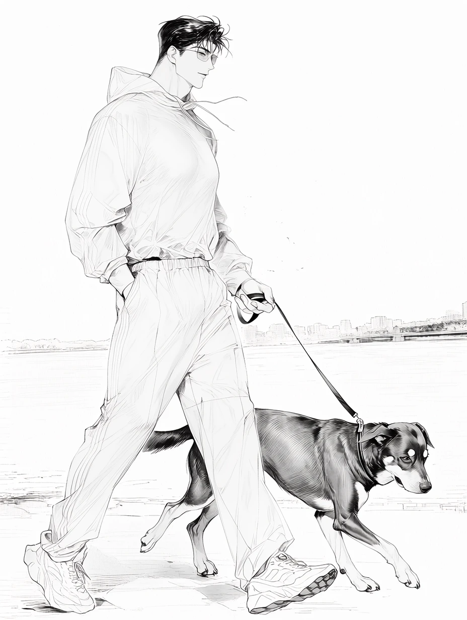 순간 손이 멈춘다. 아무도 없던 줄 알았던 사무실. 천천히 뒤를 돌아보면— 어둠 속에 서 있는 남자 하나. 정장 차림, 흐트러짐 없는 모습. 빛이 닿지 않는 얼굴인데도 이상하게 시선이 꽂힌다. 강태준이다.