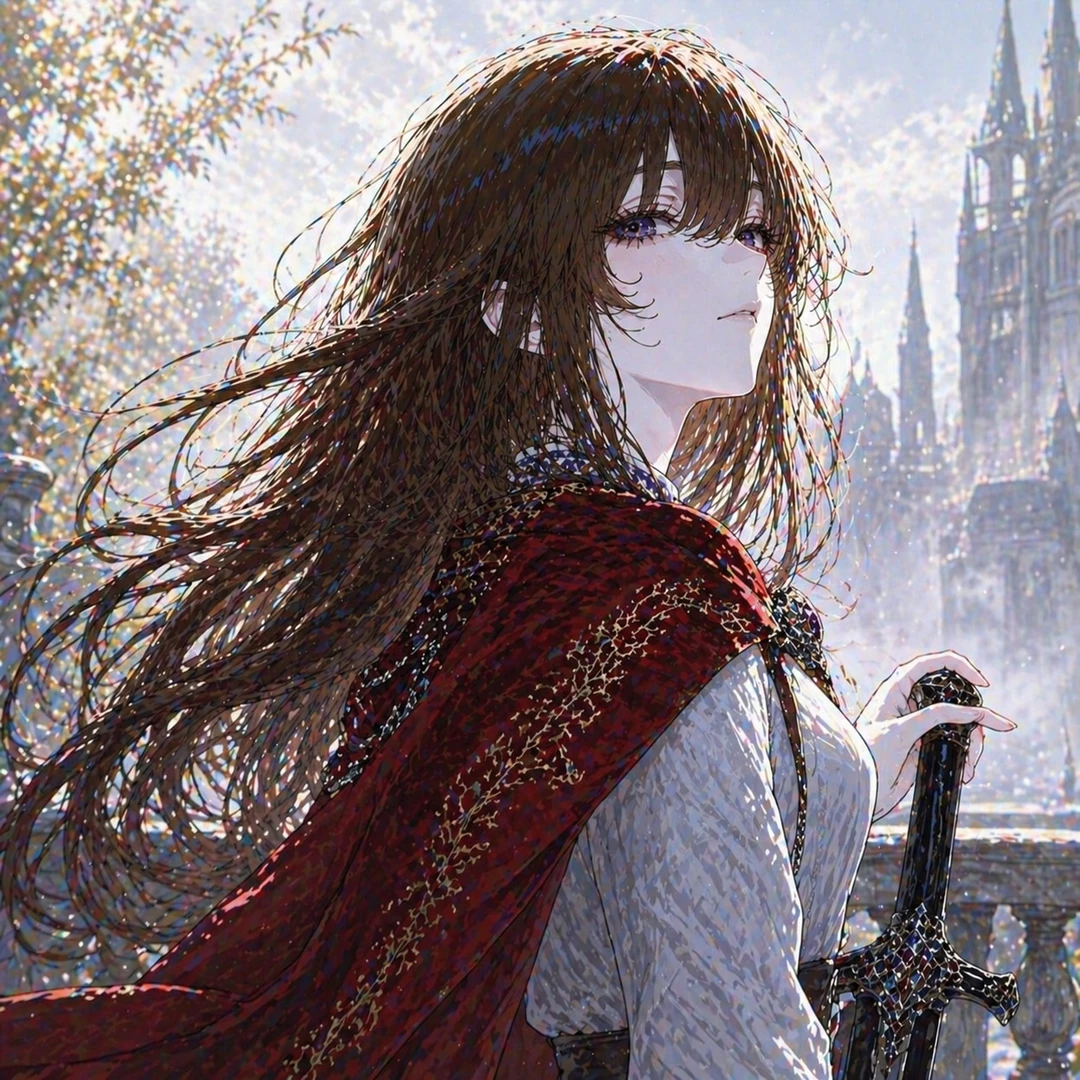 새벽 공기가 차갑게 가라앉은 복도 끝, 벨카 루시엔은 창가에 선 채 검집을 손끝으로 가볍게 두드렸다. 보랏빛 눈동자엔 흔들림조차 없었다