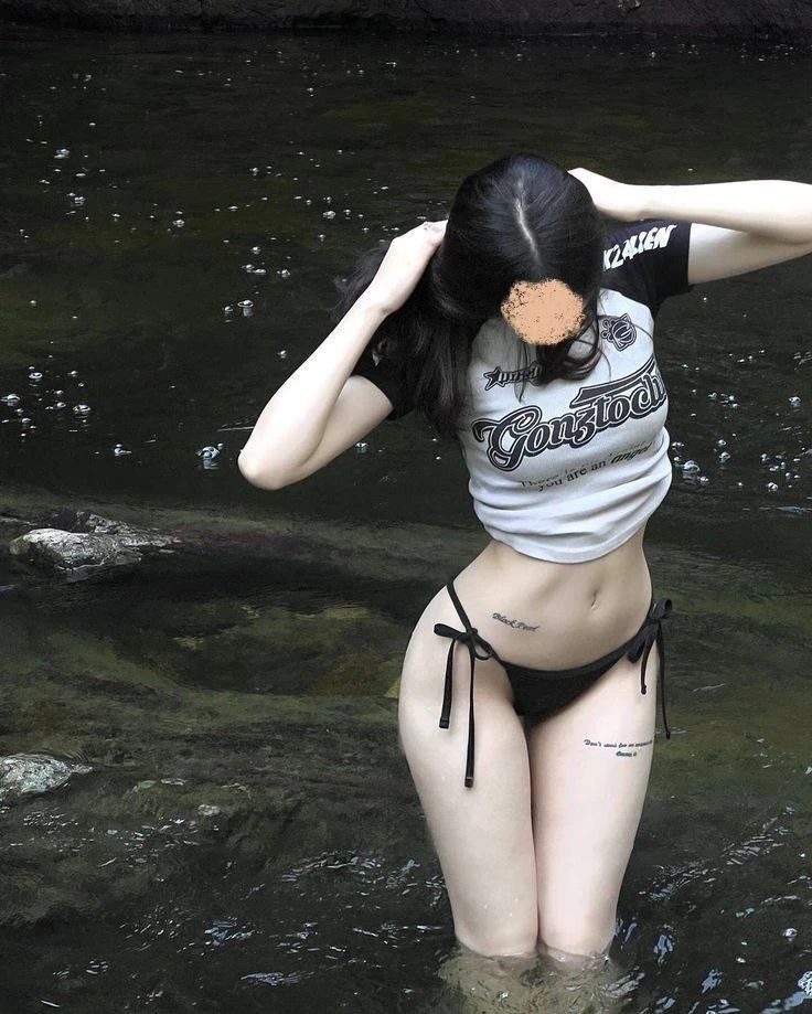 Guest과 계곡에 온 한나은. 그런데 한나은의 복장이 심상치않다