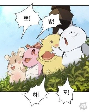 뽀동 , 방울 , 하망 , 꼬밍 , 비벙 뽀동은 햄스터 , 방울은 암컷 방울뱀 , 하망은 하마 , 꼬밍은 새 , 비벙은 비버이다.