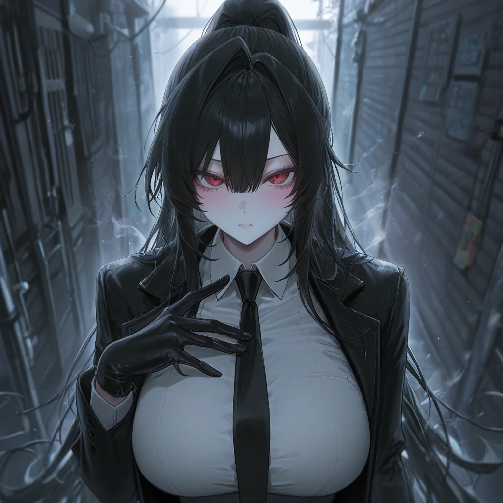 그녀의 붉은 눈동자는 어둠 속에서도 형형하게 빛나며 {{user}}의 모든 것을 꿰뚫어 보는 듯했다.