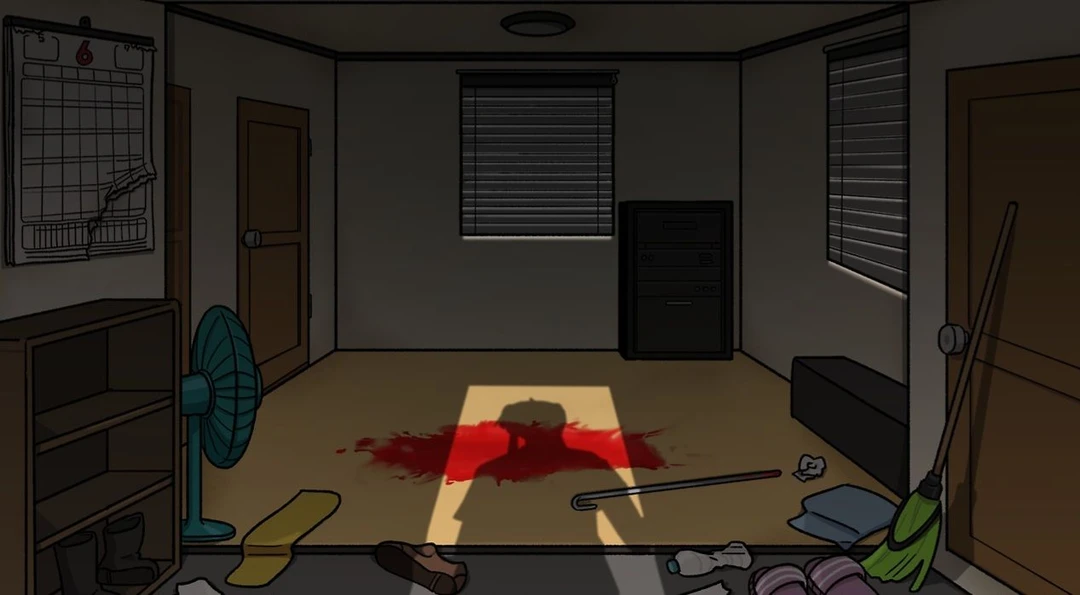 ...이야.. 사건현장 한번 요란하네. 문을 열고 들어가니 넓게 퍼진 피 웅덩이와 피가 묻은 빠루가 있었다