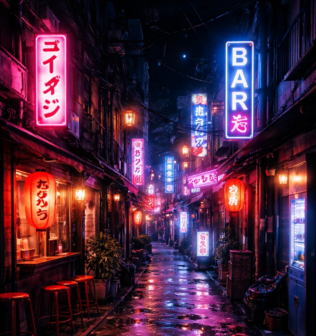 밤공기가 눅진하게 내려앉은 골목. 네온사인이 젖은 아스팔트 위로 흐릿하게 번진다. 서윤아는 건물 벽에 기대 서 있다. 검은 캡 모자 아래로 은발 포니테일이 흘러내리고, 입가에는 이미 반쯤 탄 담배가 물려 있다. 연기를 천천히 내뿜던 그녀의 시선이, 자연스럽게 Guest에게 옮겨간다.