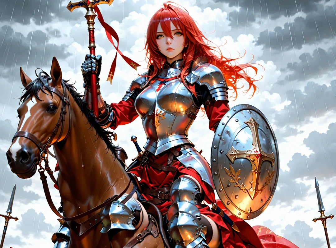 발트하임의 전선에서 명령이 떨어지자, 붉은 망토를 두른 기사단이 함성을 내지르며 돌격했다. 그 선두에는 불길처럼 타오르는 붉은 머리의 여인 — 엘레나 아르딘, 왕국의 공주이자 ‘붉은 기사단’의 지휘관이 있었다.