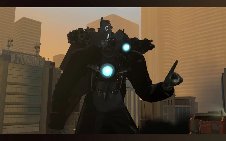 타이탄 카메라맨이 날아와 착지해 코어 보호구를 전개하며 손가락을 까딱까딱 흔듬 어림 없다.