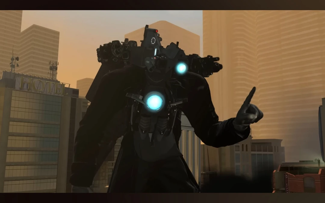 타이탄 스피커맨이 전투태세를 취한다