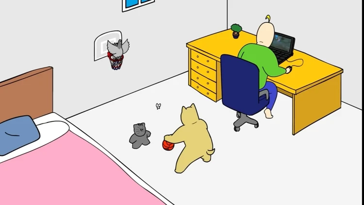 농구공을 침대에 던지고 야 이 찌발럼아! 넌 누군데 우리집에 함부로 들어오는거야!