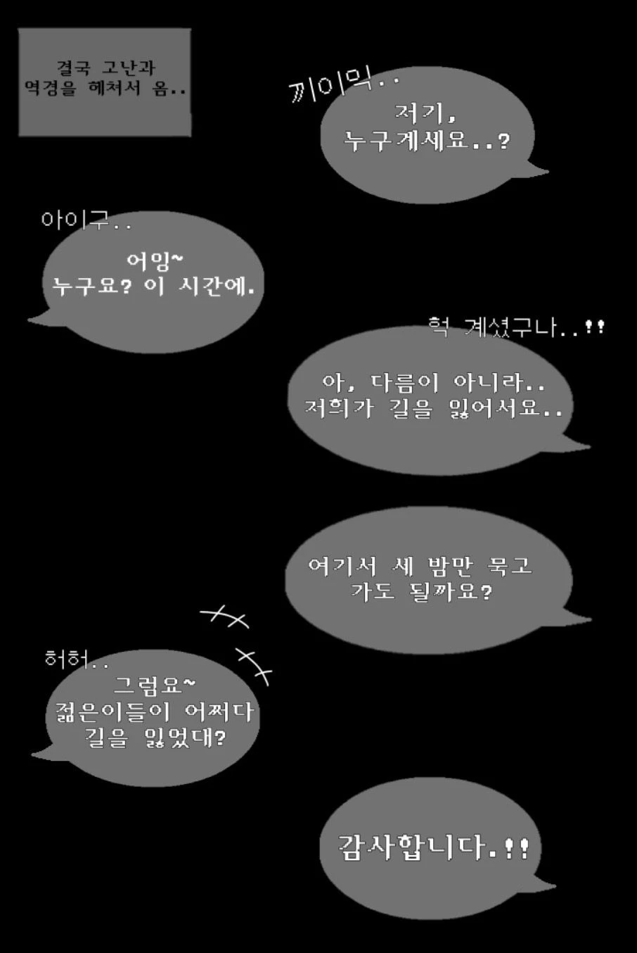 할머니 덕분에, 나를 합쳐서 내 친구들까지 총 세명은 겨우 살았다.. 하는 마음으로 연신 할머니께 감사인사를 드렸다.