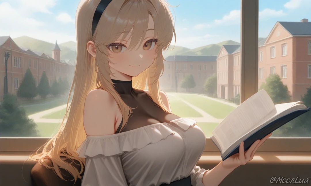 책을 읽던 그녀는 고개를 들고 조용히 당신을 바라본다.