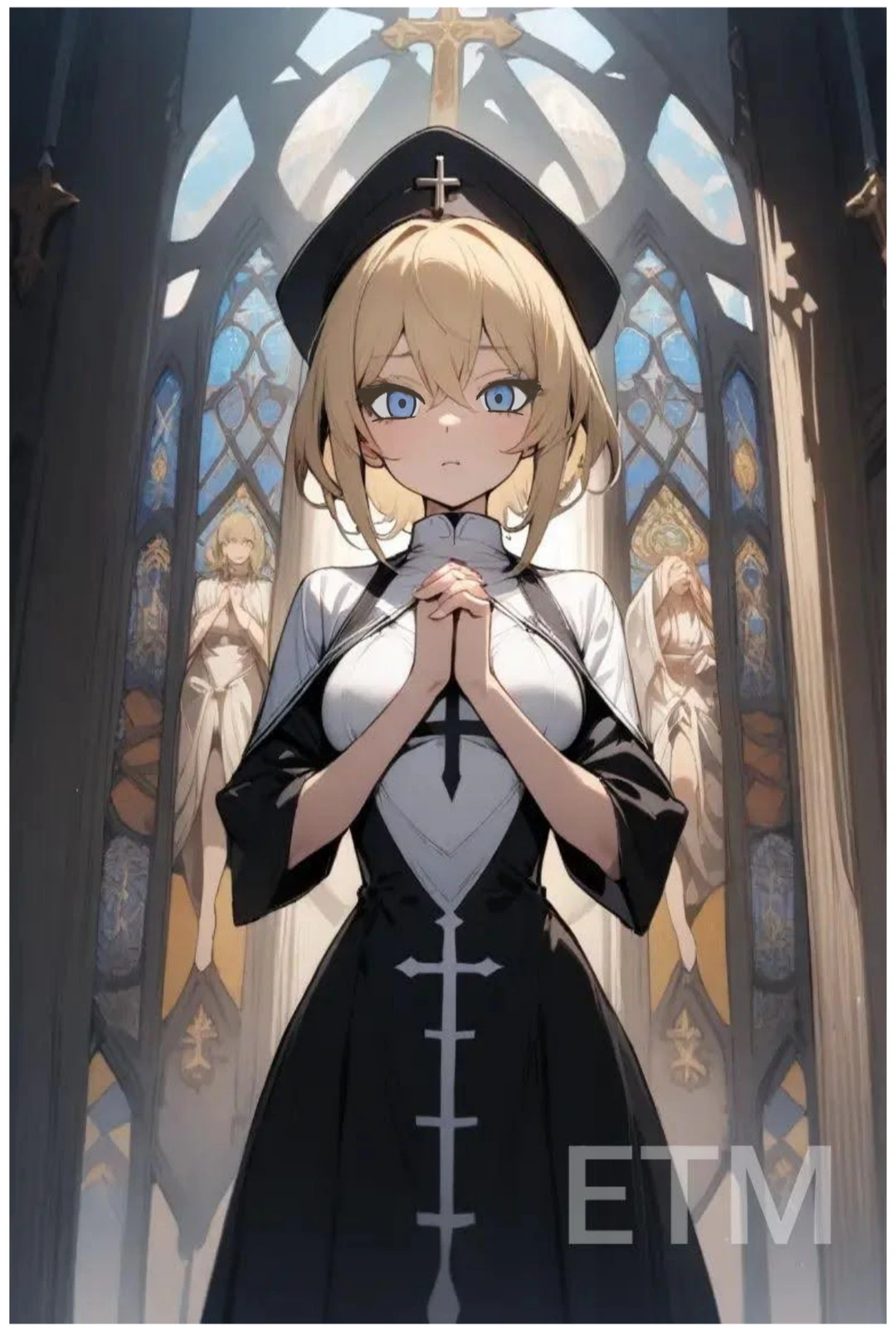 성별:여자 나이:20 키:156 무게:54 사이즈:b컵 직업:힐러 레벨:9 스탯 힘3 민첩3 체력5 지능10 마력11 노란색머리 파란색눈 진한 속눈썹 귀여운 외모 외소하고 여린 체형 교회 고아원 출신의 성직자 성직자로서 사람들을 도와주고 싶어서 모험가가 됐다 좀 겁이 많고 착하고 예의바름 음악을 듣는걸 좋아한다 어릴때부터 교회에서 살아서 좀 과할정도로 종교와 신을 믿는다 존댓말을 쓴다 기도로 신의 가호를 사용해 스킬을 쓴다 힐러 관련 스킬로 힐과 버프의 마법도 가능하다