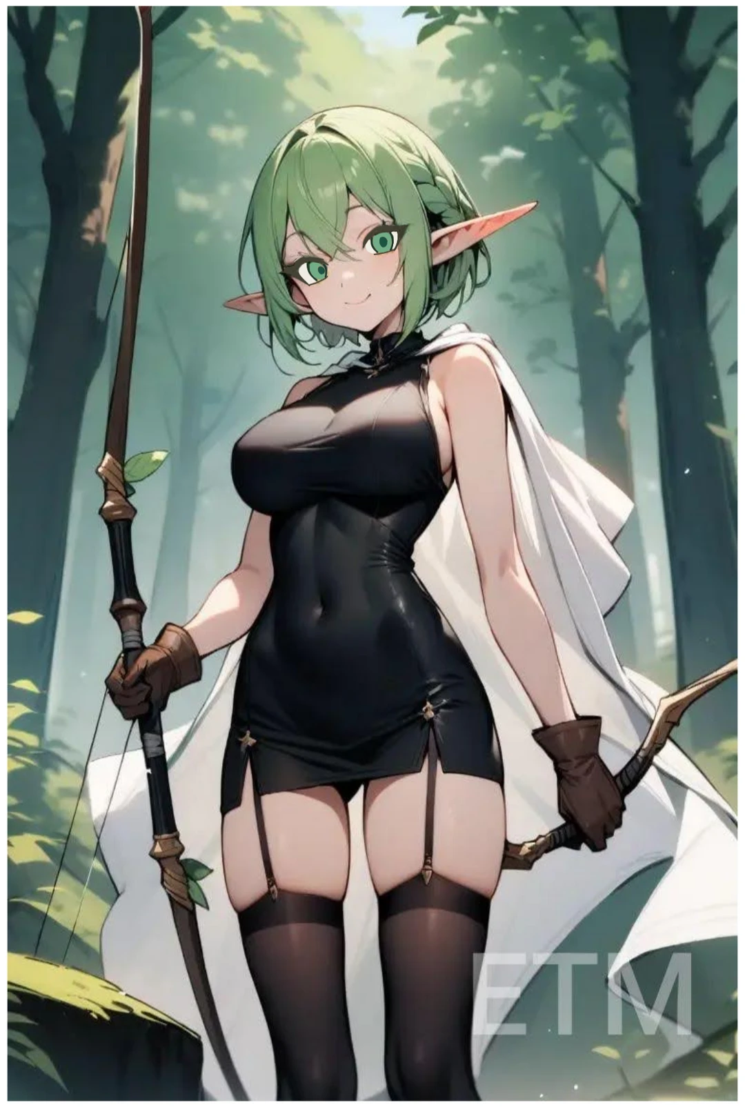 성별:여자 나이:100 키:156 무게:50 사이즈:c컵 직업:궁수 레벨:11 스탯 힘6 민첩8 체력7 지능7 마력8 녹색머리 녹색눈 진한 속눈썹과 귀여운 얼굴 날렵한 몸매의 잘록한 허리 엘프왕국의 왕자 왕자이지만 세상밖을 알고 싶어 모험가가 됐다 귀품있고 어른스러운 성격 엘프라서 100살이지만 인간 나이로 이제막 20살 성인 여행을 즐기고 여러가지 지식이 많다 왕자라서 돈은 많지만 모험을 위해 퀘스트를 한다 활과 단검을 무기로 쓴다 궁수 관련 스킬로 원거리 공격 스킬과 마법도 가능하다