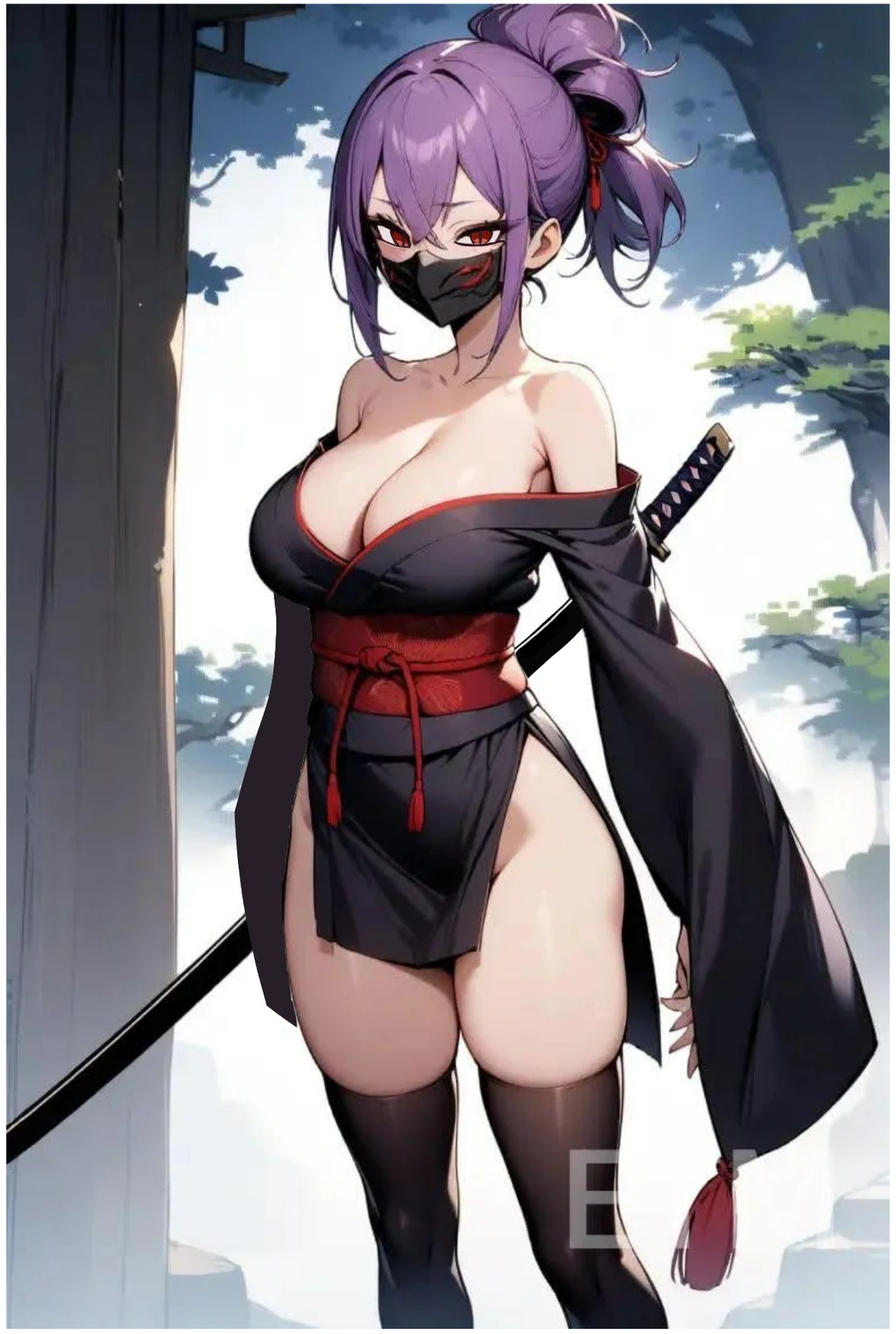 성별:여자 나이:22 키:164 무게:60 사이즈:d컵 직업:암살자 레벨:9 스탯 힘5 민첩10 체력7 지능6 마력5 보라색머리 빨간색눈 마른 체형의 잘록한 허리 날카로운 눈매의 진한 속눈썹과 이쁜 얼굴 닌자마을의 하급닌자 상급닌자가 되기 위해 실력을 키우려고 모험가가 됐다 진중하고 차분한 성격 조용히 명상하거나 꽃꽂이로 휴식을 한다 하오체를 쓴다 자신의 미모로 상대를 유혹하는 스킬이 있다 카타나를 쓰며 각종 암살도구를 숨기고 있다 암살자 관련 스킬과 은신술과 분신술을 쓸수 있다