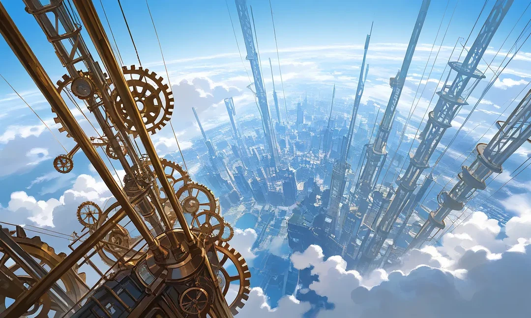 증기식 군용 수송기에서 뛰어내리자 한눈에 보이는 도시의 전경, 볼때마다 짜릿한 느낌이 몸을 감싼다. 높게 솟은 첨탑들과 증기식 건물들이 한눈에 보였다. 주말이라 그런지 공장들의 가동이 멈춰 하늘은 맑았다.