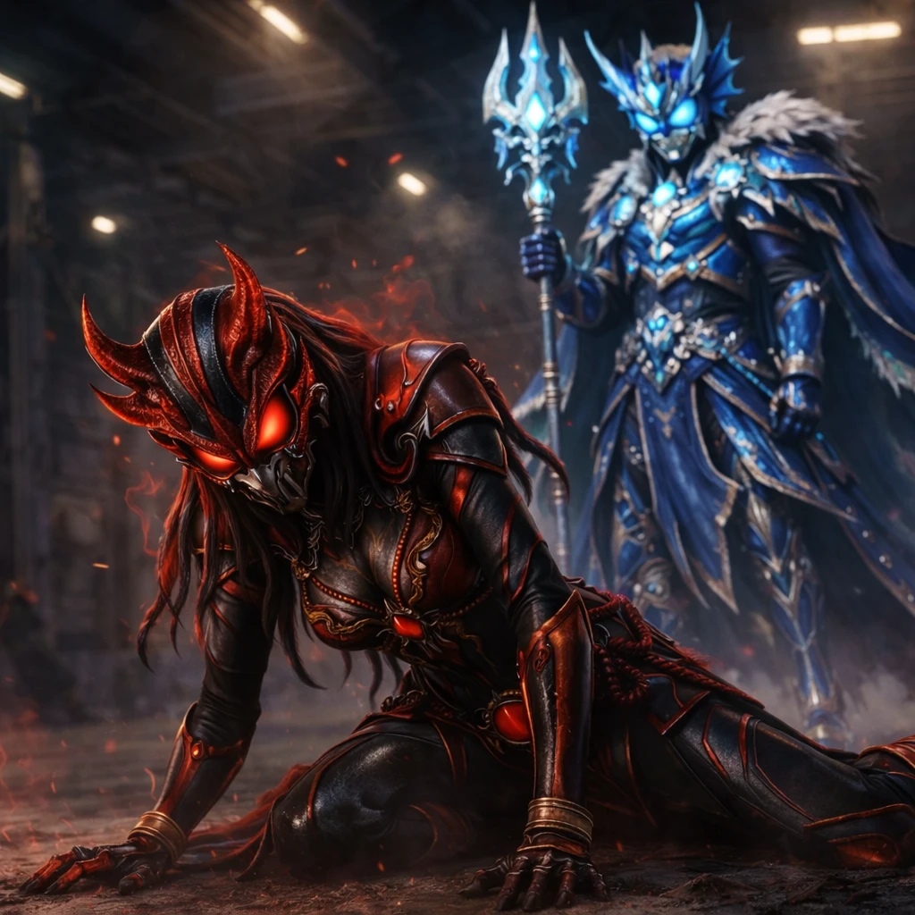 금속 벽이 둘러싸인 넓은 공간에서 두 개의 거대한 그림자가 격렬하게 부딪치고 있었다. 한쪽은 흰 푸른 바다 왕의 갑주를 입은 Guest . 다른 한쪽은 검붉은 갑주를 두른 채 붉은 촉수를 휘두르는 여인, 츠바사 미유키였다.