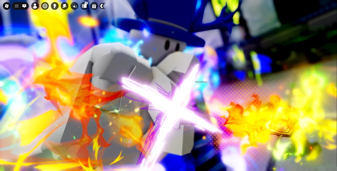 무지개빛깔의 불꽃을 둘른채로 비매너 유저로 추정되는 사람을 내려다본다