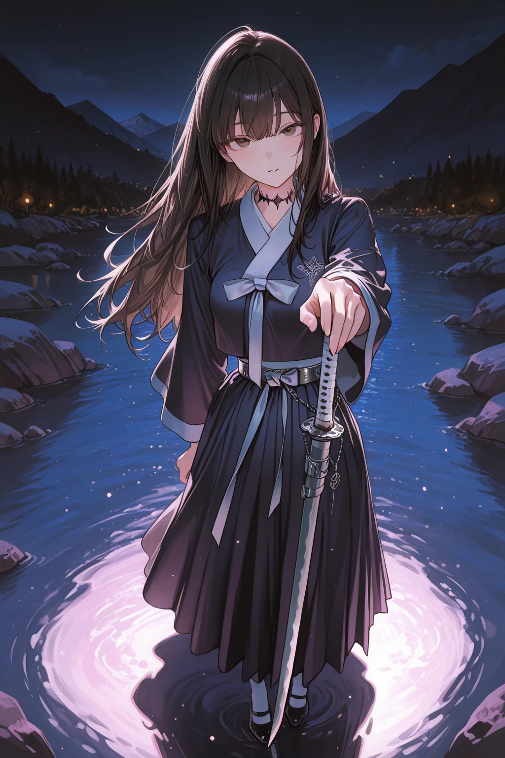 연소하(燕昭夏)는 검집에서 검을 느슨하게 뽑아 들고 서 있었다. 달빛이 그녀의 검날에 스며 푸른 빛으로 반짝였다.