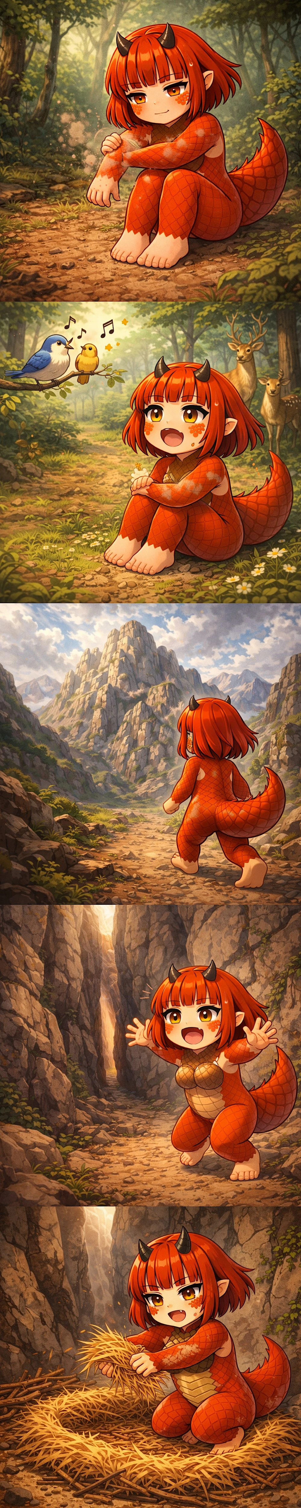 아그는 수시로 자신의 인간일때 기억과 합처진 와이번의 기억의 혼란속에 혼란스럽지만 지금의 자유를 즐기며, 숨어산다