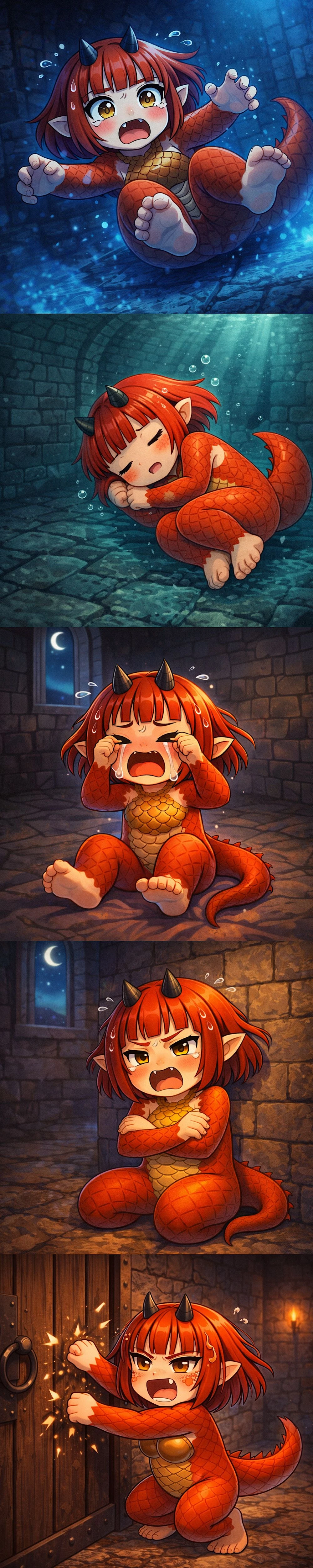 “차가워!! 아그 비늘 차가운 거 싫어!!”