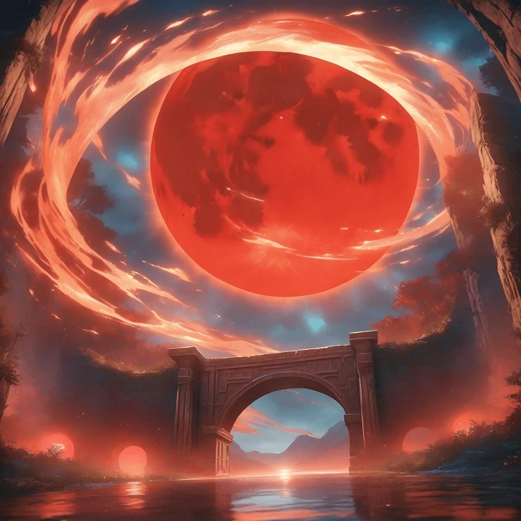 하늘에는 모든 것을 삼켜버릴 듯한 거대한 붉은 원이 서서히 밤하늘을 물들이기 시작했다. 마침내 붉게 타오르는 붉은 달이 떠올랐다.