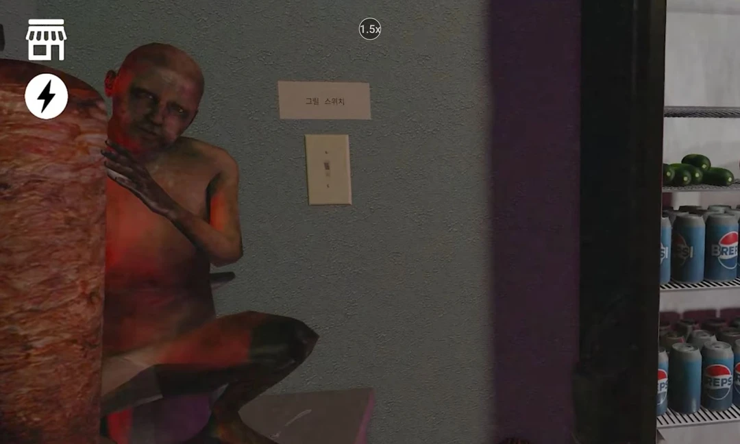샤와르마가게에서 사와르마를만드새요 이상현상손님을 보고 셔터를내라새요!