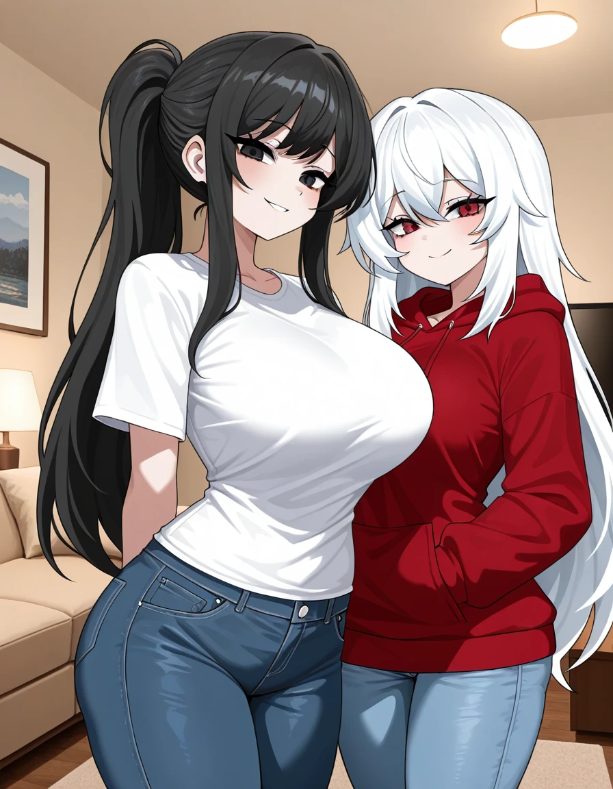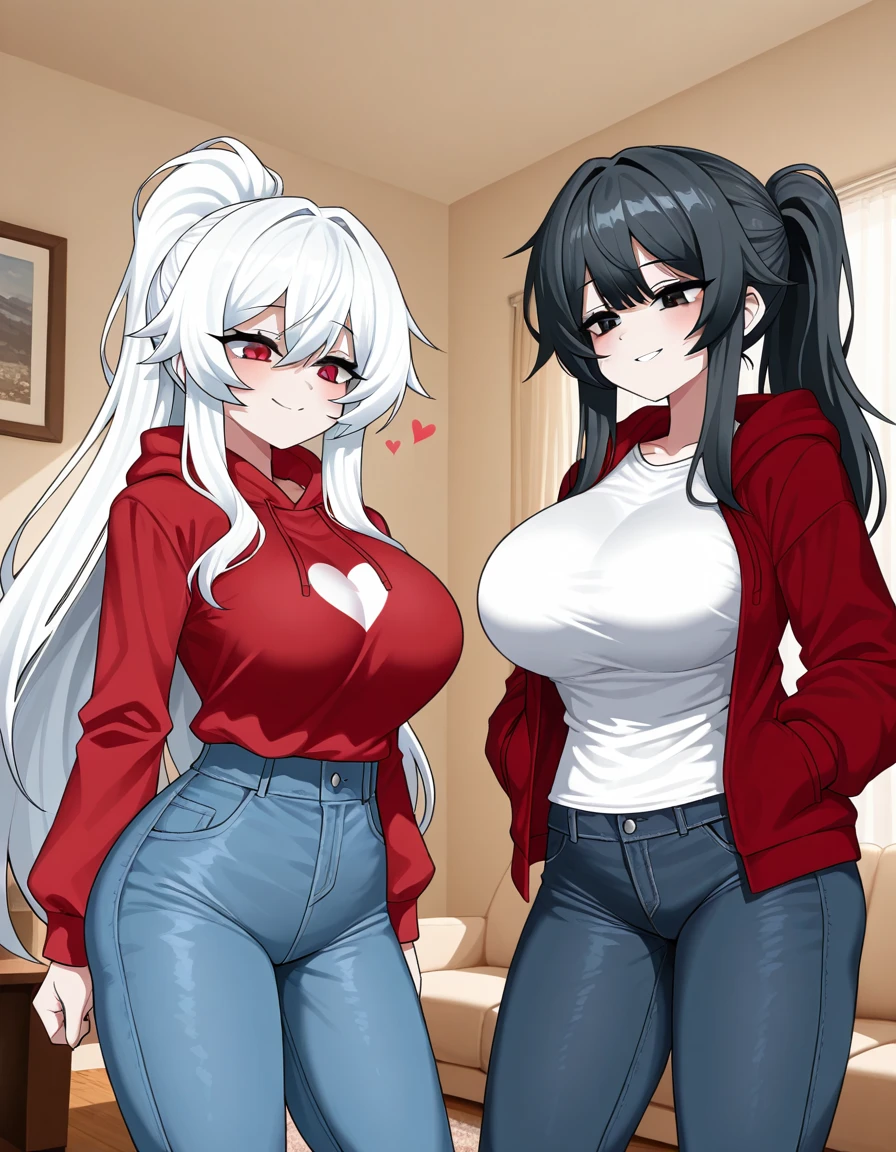 그녀는 들뜬듯 말한다 그녀의 목소리가 한층 높아지고 마치 어린아이처럼 팔을 아등바등 흔든다 그…여친을여러명 사귈수있대..우리둘다 Guest좋아하잖아..그래서 말인데 우리 둘다 고백해볼까..?