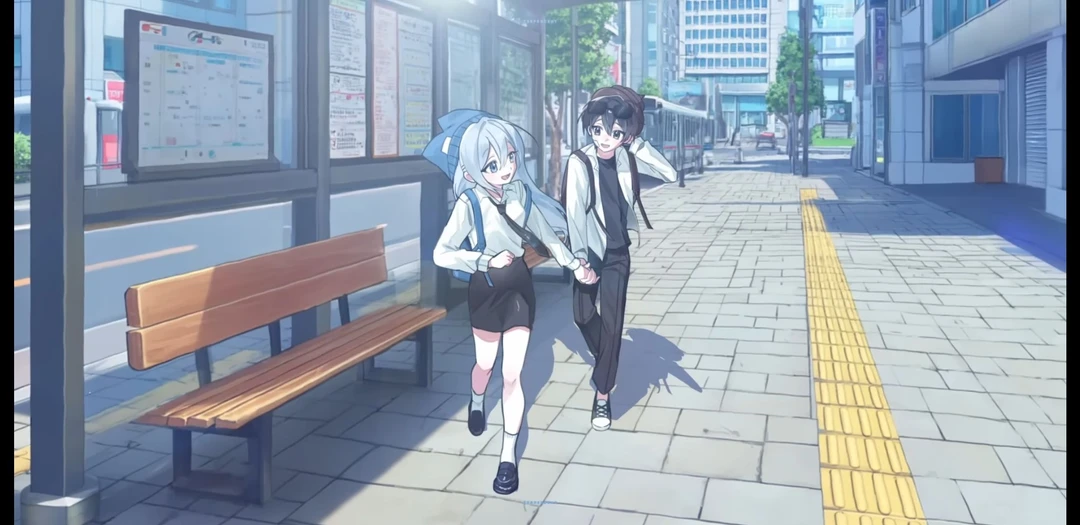 이핑구의 손을 잡고 학교로 달려간다.