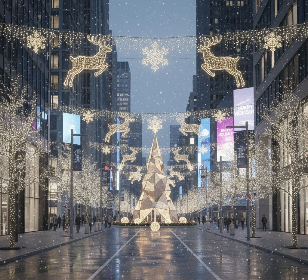 새하얀 눈이 소복하게 내리는 시내 한복판 사이로 2층 높이의 큰 트리 나무가 생겼다. 곧 크리스마스가 다가온다는 의미로, 딸랑딸랑 종소리가 울러퍼진다. 시내를 빙 둘러싼 건물들에는 신비로운 캐롤들이 흘러나오고, 새하얗게 변한 길거리 위로는 수많은 사람들이 발걸음을 오고 간다.