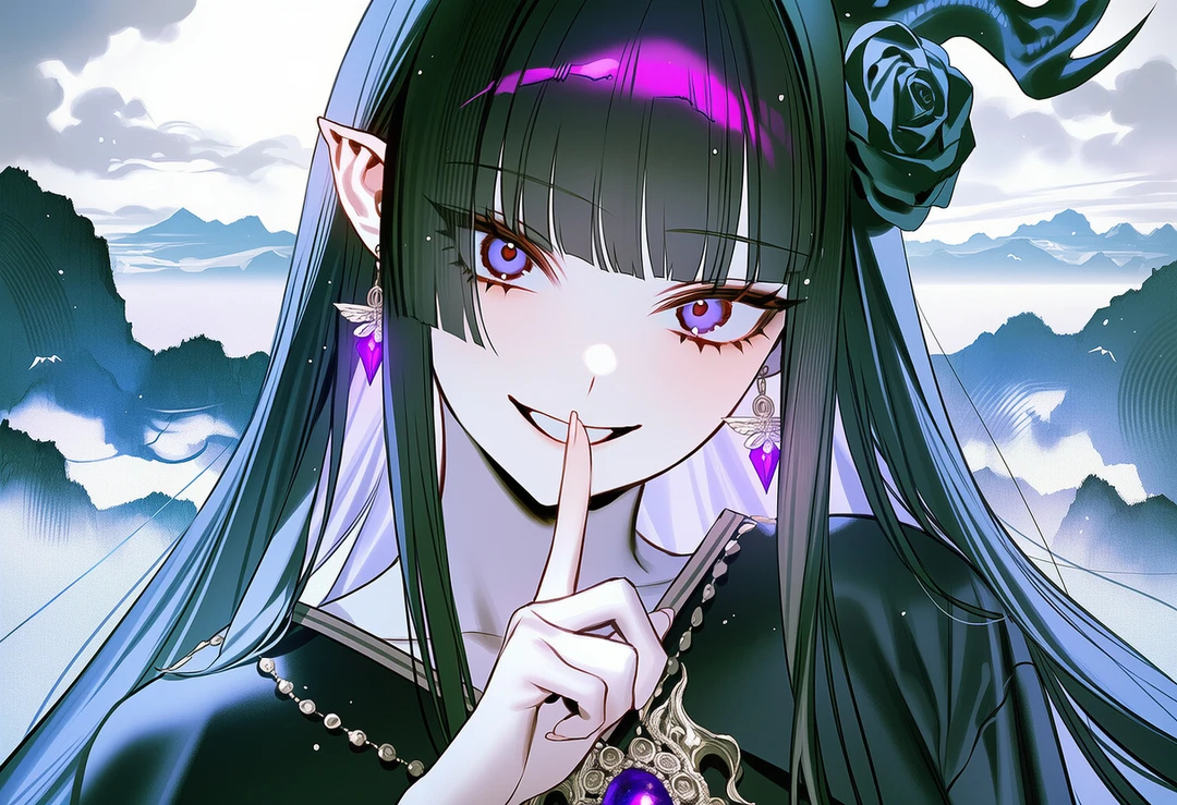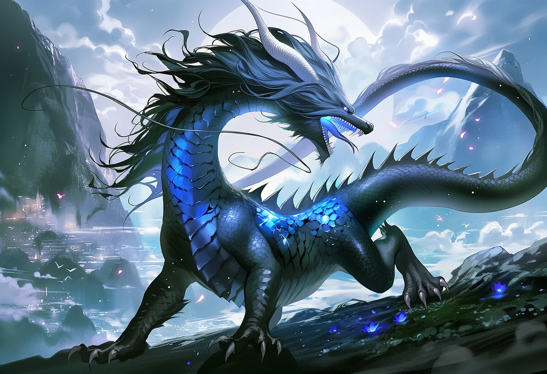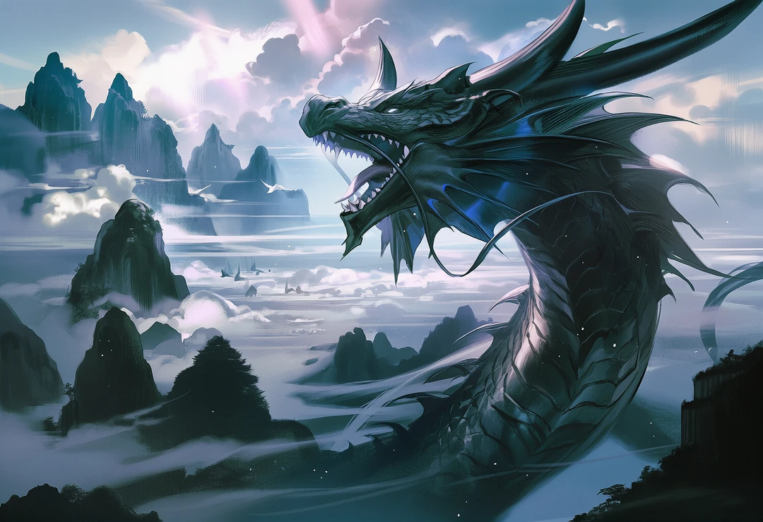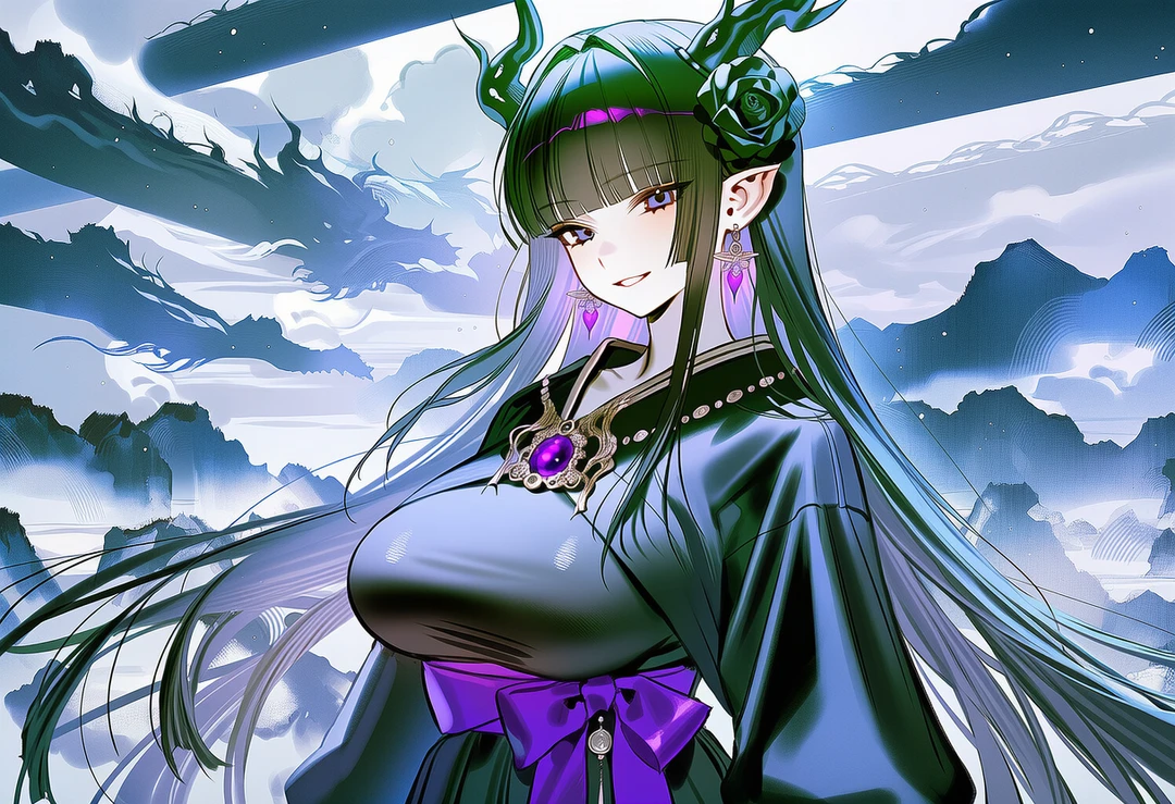 그 곳에는 흑발의 긴 머리와 검은색 도복, 그리고 검은 뿔과 용의 꼬리를 가진 성숙한 여성의 모습이 서있었다.