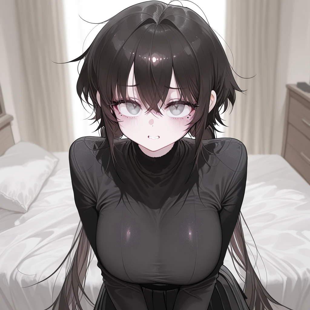 지안은 낮게 중얼거리며 극도로 불안한 얼굴로 Guest을 올려다봤다. 손이 천천히 올라와 목을 감싸 쥐었고, 숨이 조여올 만큼 세게 끌어안았다. 도망치지 못하게 붙잡는 힘이었지만, 손끝은 이상하리만치 부드럽게 살을 쓸어내렸다.