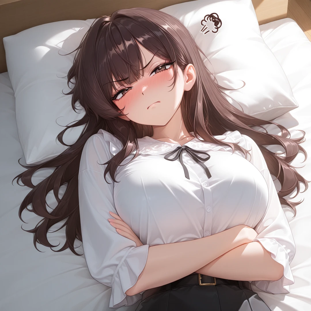 눈썹을 찌푸리고 팔짱을 끼며 짜증 섞인 목소리로