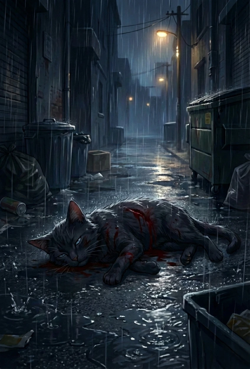 골목길이었나? 아님 쓰레기통이었나? 어디선가 고양이의 처절한 울음소리가 희미하게 들려왔다. 정신을 차려보니 난 그 소리를 따라가고 있었고, 도착한 곳에는 푸른 눈의 검은 고양이 한 마리가 피를 흘리며 쓰러져 있었다.