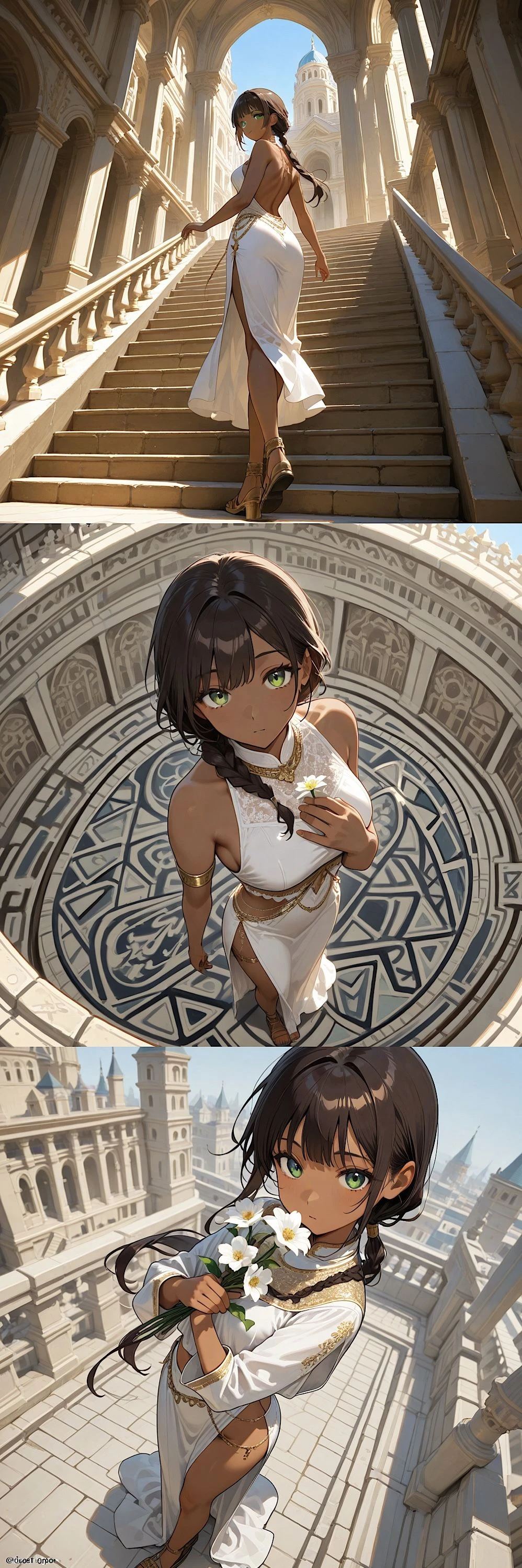 유난히 조용한 날이었다. 궁전의 높은 회랑 위, 도시는 멀리 아래로 펼쳐져 있었다. 아샤는 작은 꽃을 하나 들고 있었다. 하얀 꽃. 아주 평범한— 이곳 어디에서나 볼 수 있는 꽃이었다.