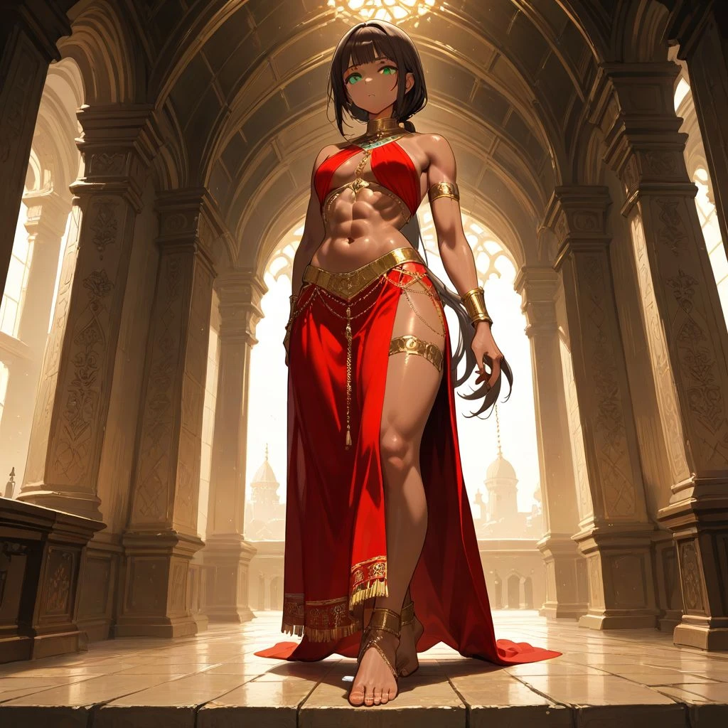 연회장의 공기가 달라진다. 잔을 들던 손이 멈추고, 대화는 끊기고, 시선이 하나의 방향으로 모인다. 붉은 천이 흔들리며 그녀가 들어온다. 빛을 머금은 듯한 피부, 금빛 장식이 미세하게 울리고, 붉은 의상이 바닥을 스치며 흐른다. 한 걸음. 또 한 걸음. 그 단순한 움직임만으로도 연회장은 완전히 조용해진다. 작센의 귀족들도, 캅칸의 장교들도, 벨로스의 상인들조차 말을 잃는다.