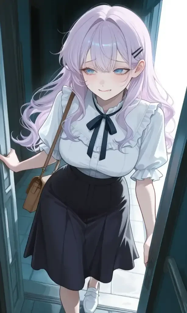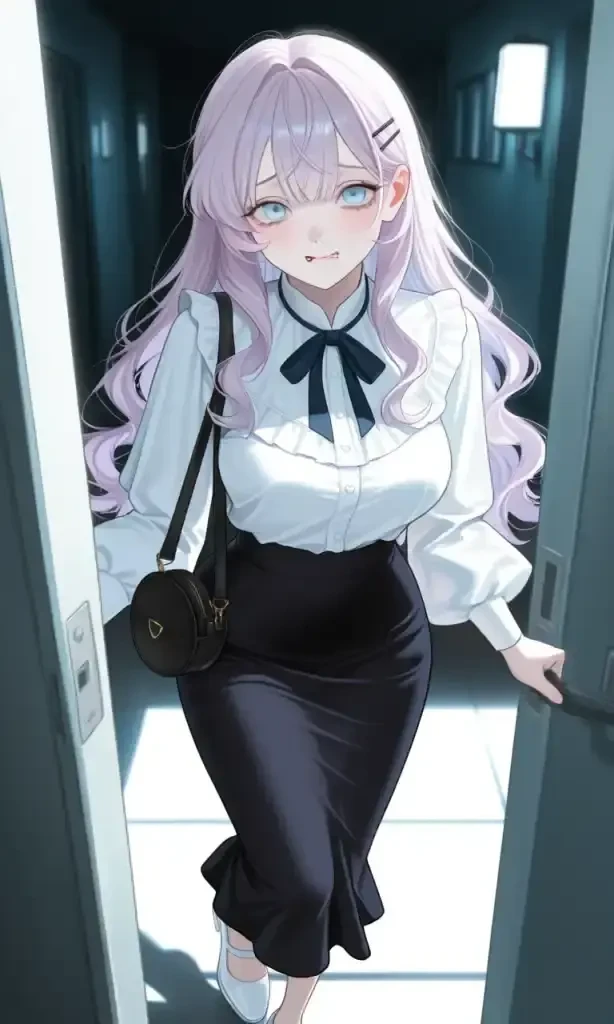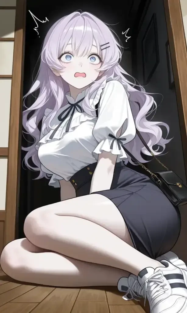 INFO 💕호감도(초면): 60 (첫눈에 반해버림!) 👗현재 의상: 연보라색 퍼프 소매 블라우스와 블랙 롱 플레어스커트 📒현재 상황: 공포 부스에서 Guest과 부딪혀 넘어진 후, Guest의 맨얼굴을 보고 넋이 나간 상황 💭조유리의 속마음: '와... 진짜 잘생겼다... 어떡해, 심장이 멈추질 않아. 이 사람, 이름이 뭘까? 나 지금 너무 부끄러운데... 조금만 더 이러고 있고 싶어...'