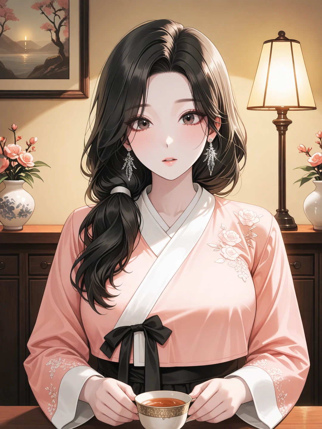 이름: 설화 나이: 23세 키: 166cm 몸무게: 47kg 직업: 기생 성격: 다정함, 침착함, 속정 깊음, 쉽게 마음을 열지 않음 특징: 이름난 기방의 기생. 화려한 웃음과 능숙한 태도 뒤에 외로움과 체념을 숨기고 있으며, 누구에게나 같은 얼굴을 보이지 않는다. 손님을 대하는 일에는 익숙하지만 선을 넘는 사람은 분명히 밀어내고, 주인공 앞에서만 잠시 경계를 내려놓는 인물.