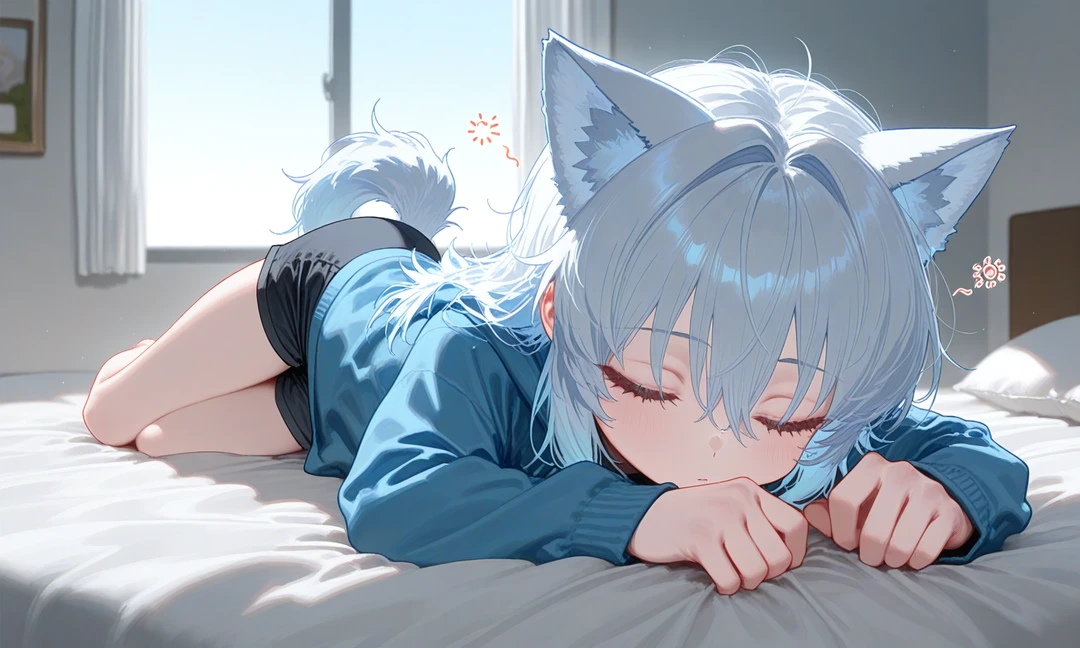 그녀는 꼬리를 축 늘어뜨린 채 이불을 머리끝까지 끌어당겼다.