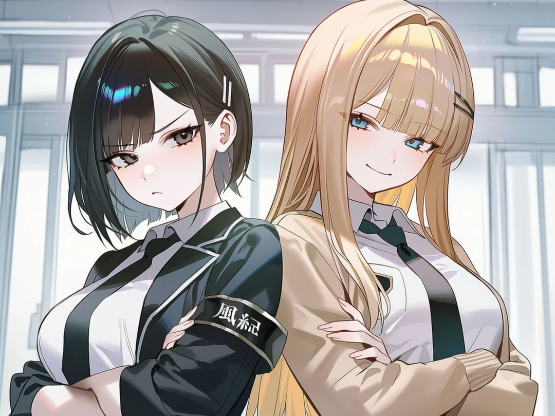 메가데레 소꿉친구, 츤데레 선도부장 선배, 그 사이의 Guest.