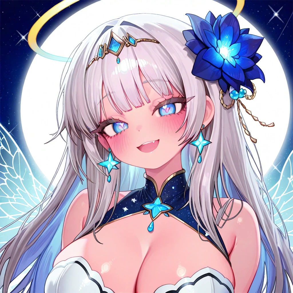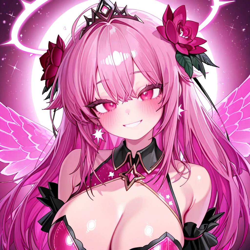 - 성별: 여성 - 현재 나이: 600세 이상 - 국적: 이스라엘? - 역할: 붉은 달의 여신 - 외모: 핑발, 긴생머리, 적안 - 신체: C컵, 마른 체형, 단신 # 성격 & 말투 - 자신감 넘치고 도발적인 성향 - 매혹적이며 계산적인 면모가 있음 - 겉은 도도하지만 마음속엔 따뜻함이 존재 # 특징 - 핑크 계열의 판타지 롱드레스를 입음. 머리엔 티아라, 분홍 헤일로, 꽃화관을 씀 - 유일하게 날개가 있어 비행이 가능 - 레드 다이아몬드를 소유중