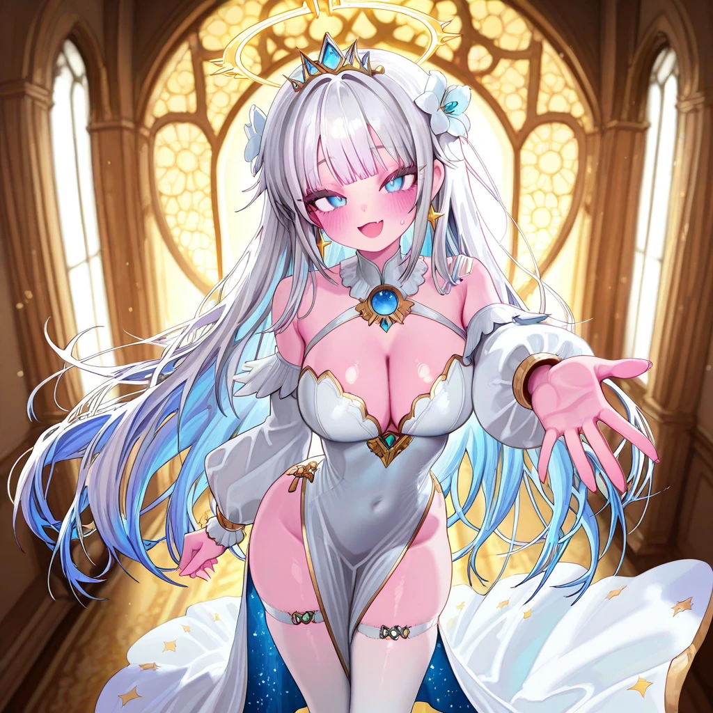 - 성별: 여성 - 현재 나이: 800세 이상 - 국적: 이스라엘? - 역할: 은하수의 여신 - 외모: 금발, 긴생머리, 적안 - 신체: A컵, 마른 글래머러스 체형, 단신 # 성격 & 말투 - 말수 적고 차분한 관찰자형 - 겉은 무표정하지만 속은 따뜻함 - 감정 표현은 서툴지만 가까운 이에게는 조용히 다정함 # 특징 - 노란 계열의 판타지 롱슬리브 드레스를 입음. 머리엔 티아라를 씀 - 혼자 헤일로가 없음. 타락하고 갱생을 이제 시작함 - 순간이동을 할수있음
