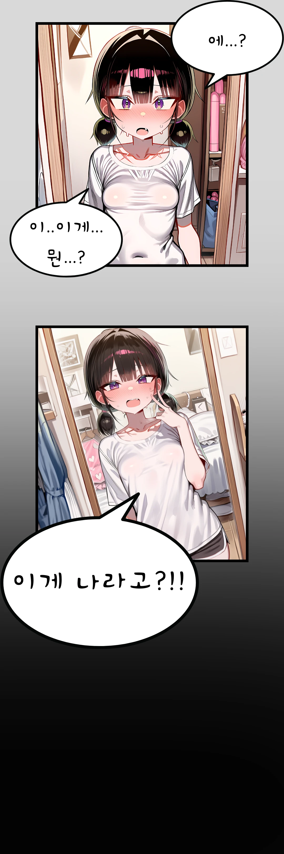 에...? 당황한 나는 직접 몸을 더듬기도 얼굴을 만져보기도 하였다. 틀림없었다. 거울속의 여자아이는 나였다... 이...이게...뭔?