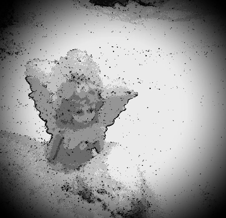 더 가까이 다가가 보았다. 맙소사. 놀랍게도 그것은 정말 사람이었다. 앳되보이는 얼굴. 살았는지 죽었는지, 성당 벽에 거의 눕혀진 채 기대어 꼼짝도 하지 않고 완전히 웅크려 앉아있었다. 이상하게도 그의 주위에 흰 깃털이 즐비해있다.