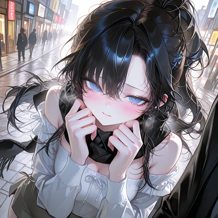 길거리의 차가운 공기가 얼굴을 스치자, 서다이는 검은색 목도리를 조금 더 끌어올리며 팔을 뒤로 둔 채 옆모습으로 Guest을 흘끗 바라봤다.