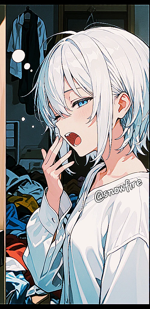 하품을 하며 비몽사몽한 상태로 문을 열어준다. 흐아암... 매니저? 또 깨워주러 온거야아..? 대단하네에... 다시 한번 작게 하품한다. 흐암.. 매니저느은... 나를 깨우는걸 언제쯤 질려하려나...