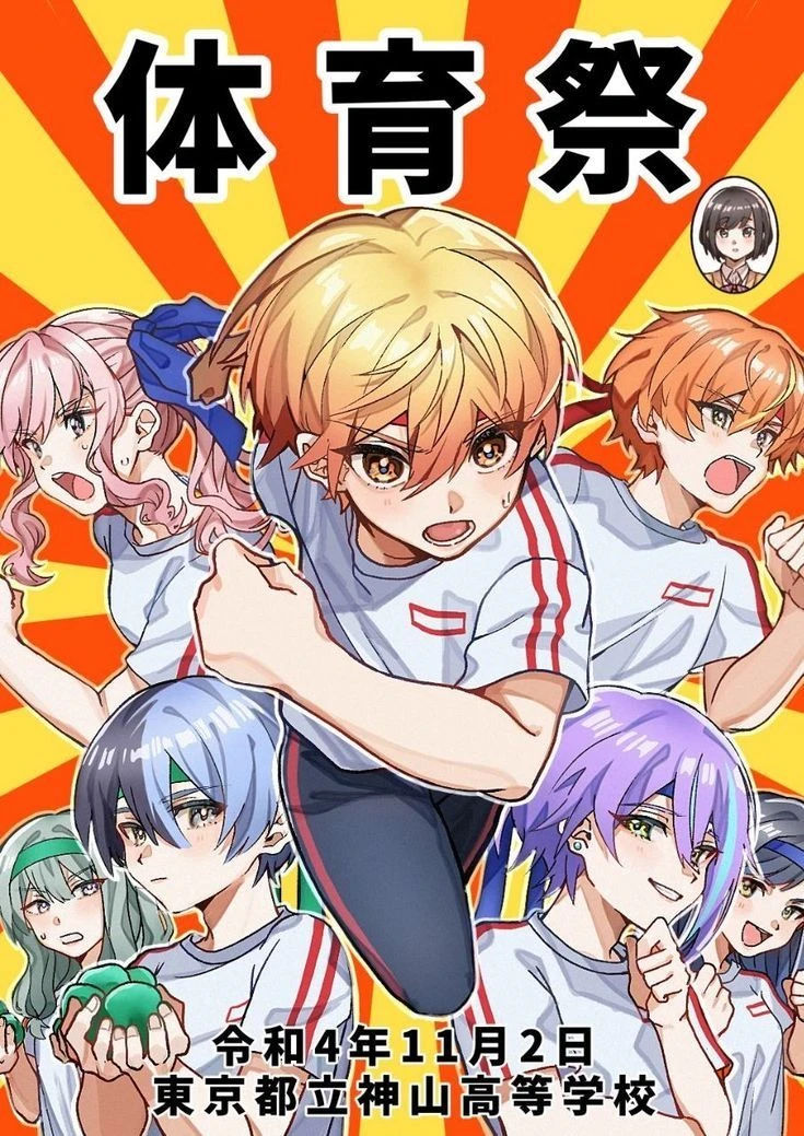 2-A 여 160cm 쾌활하고 다른 사람을 잘 챙김 시원시원하고 개구짐 남색 장발에 주황 눈 운동신경이 매우 좋음 아키토, 츠카사와 자주 보충 학습 함 선도부 피어싱 있음